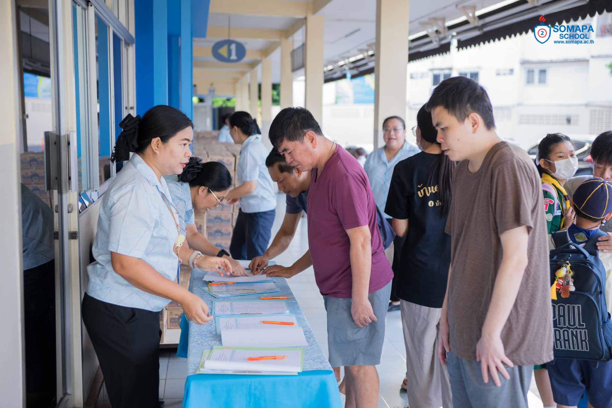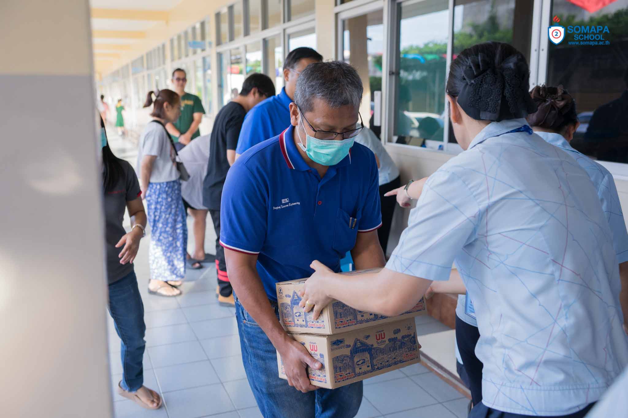 ปกครองนักเรียนระดับอนุบาล และประถมศึกษา รับนมโรงเรียน