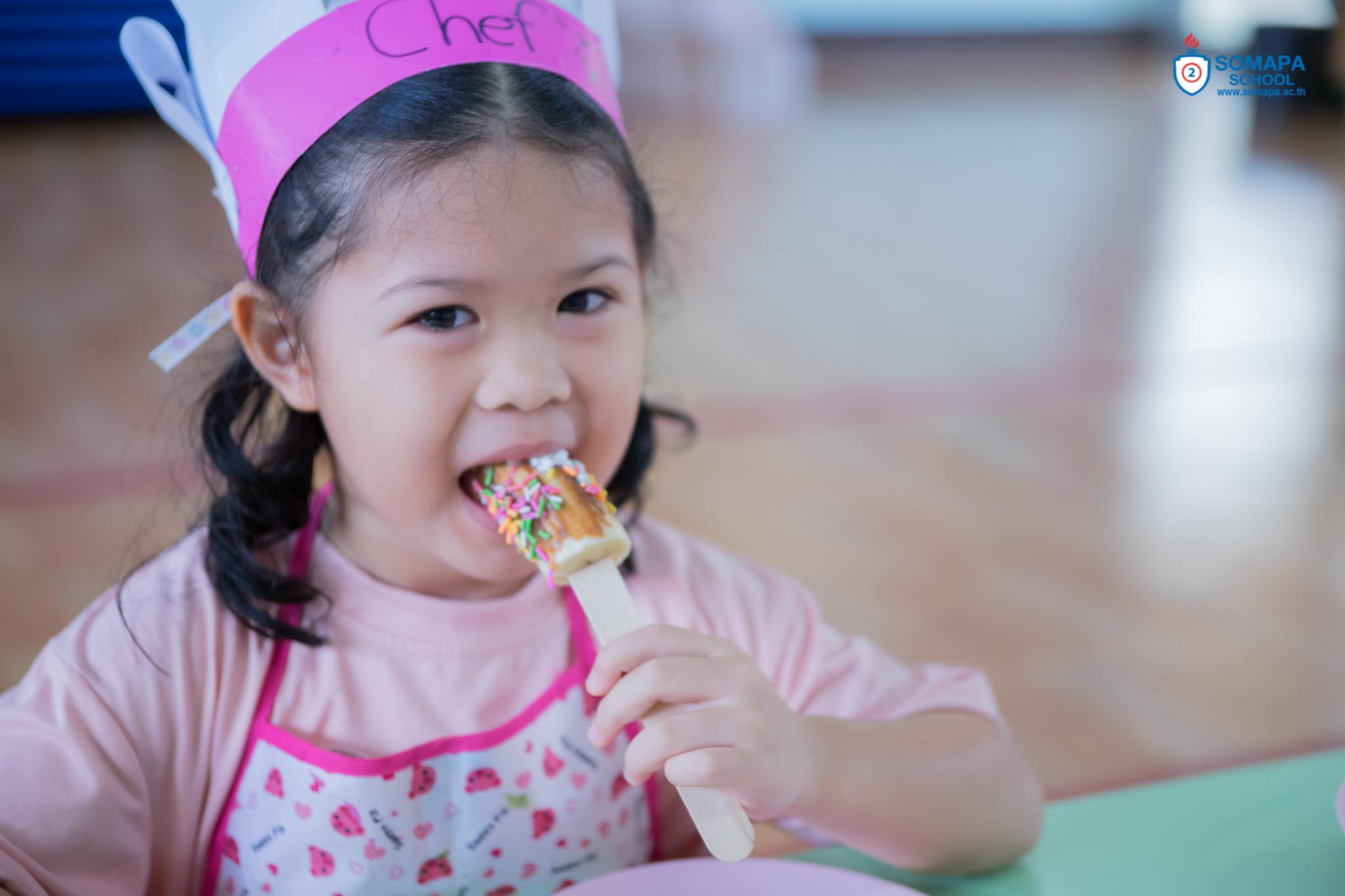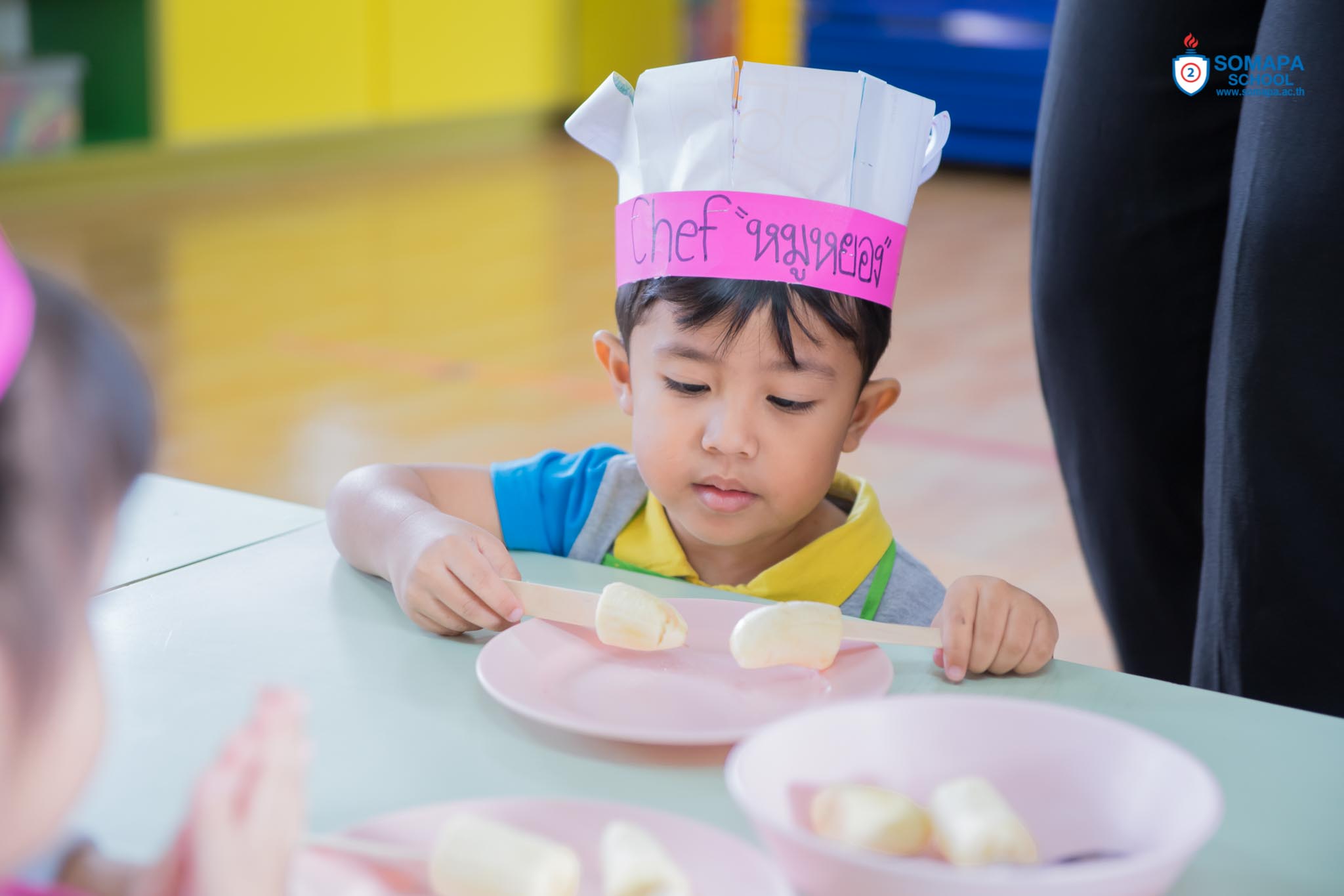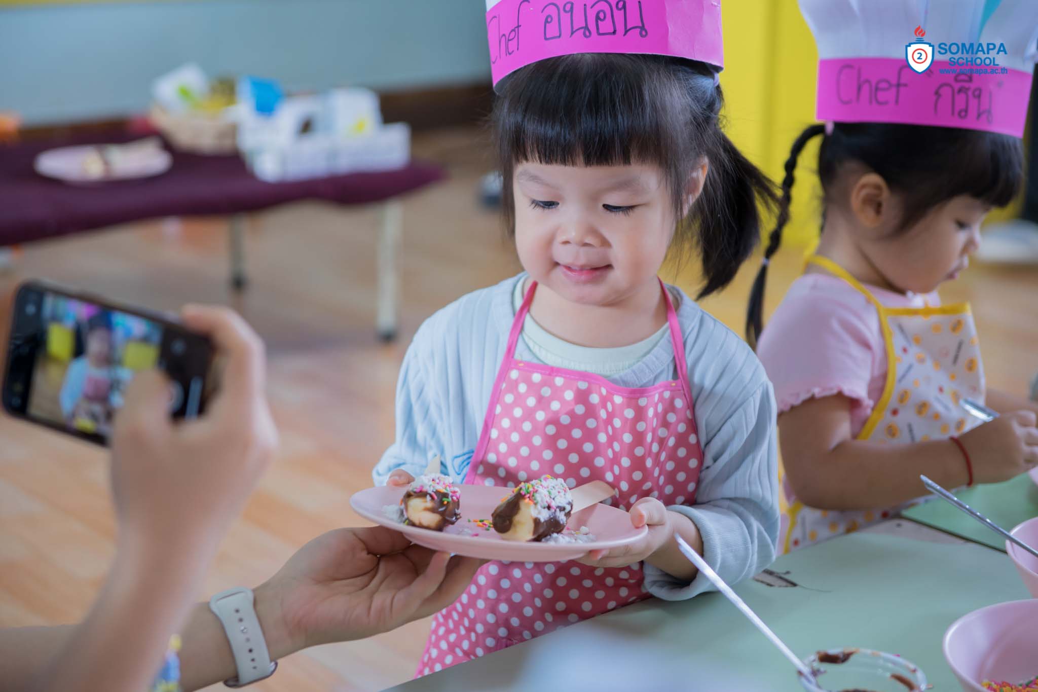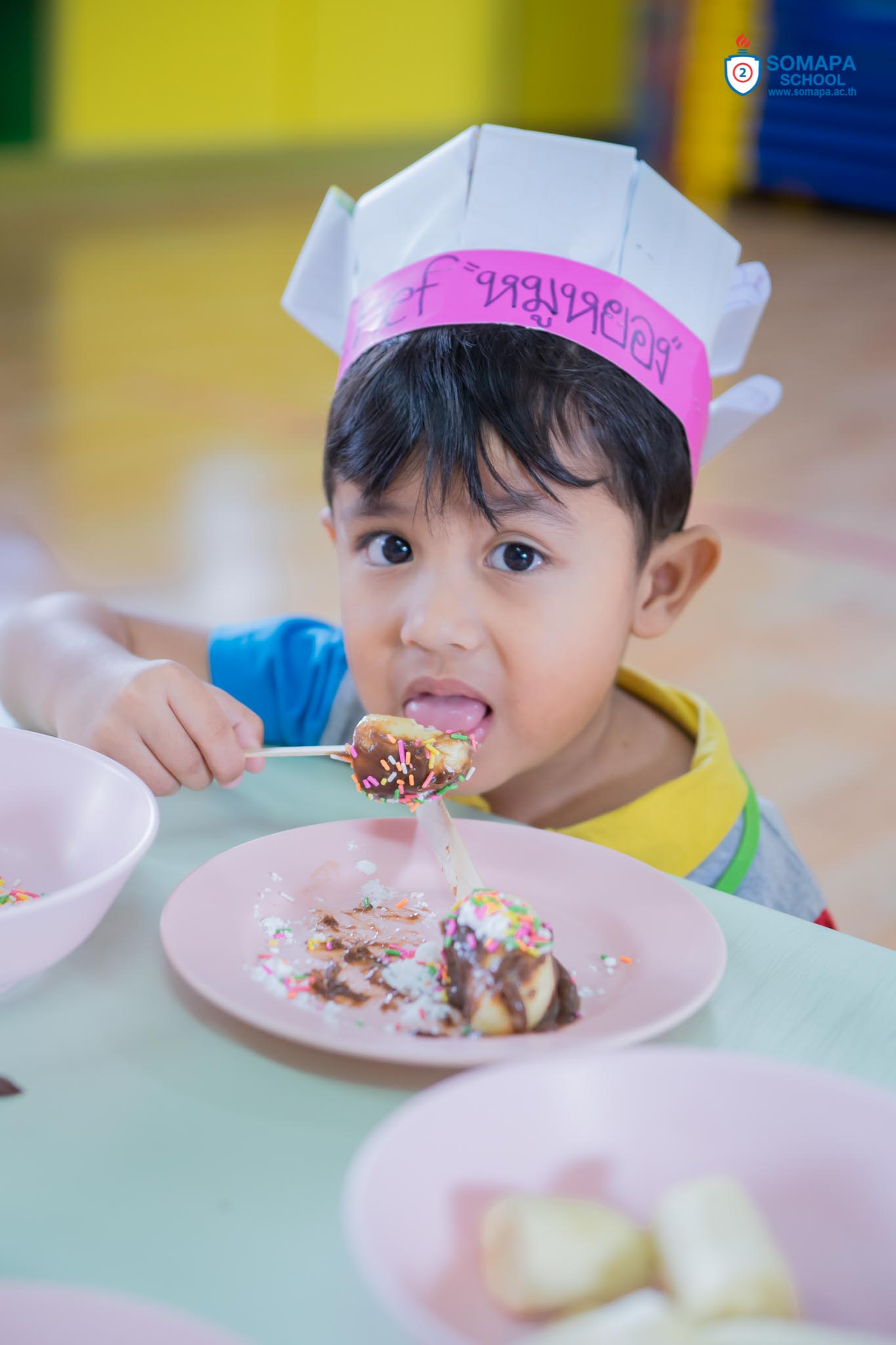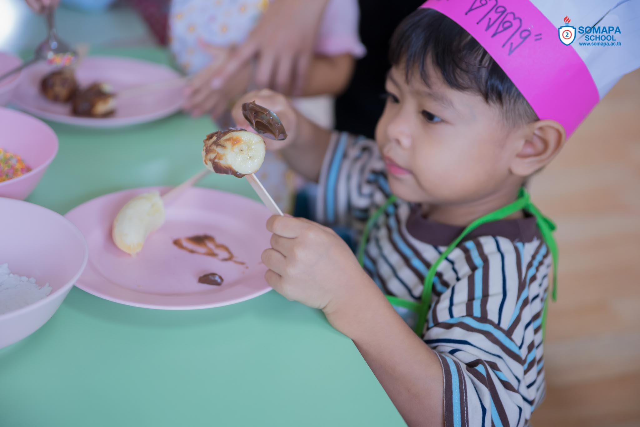 - กิจกรรม Cooking เมนู Banana Choco การผสมผสานระหว่างกล้วยกับช็อกโกแลต เป็นได้ทั้งของหวาน ขนม เด็กๆได้ลงมือทำเอง ทานเองอร่อย และสนุกมากๆเลย