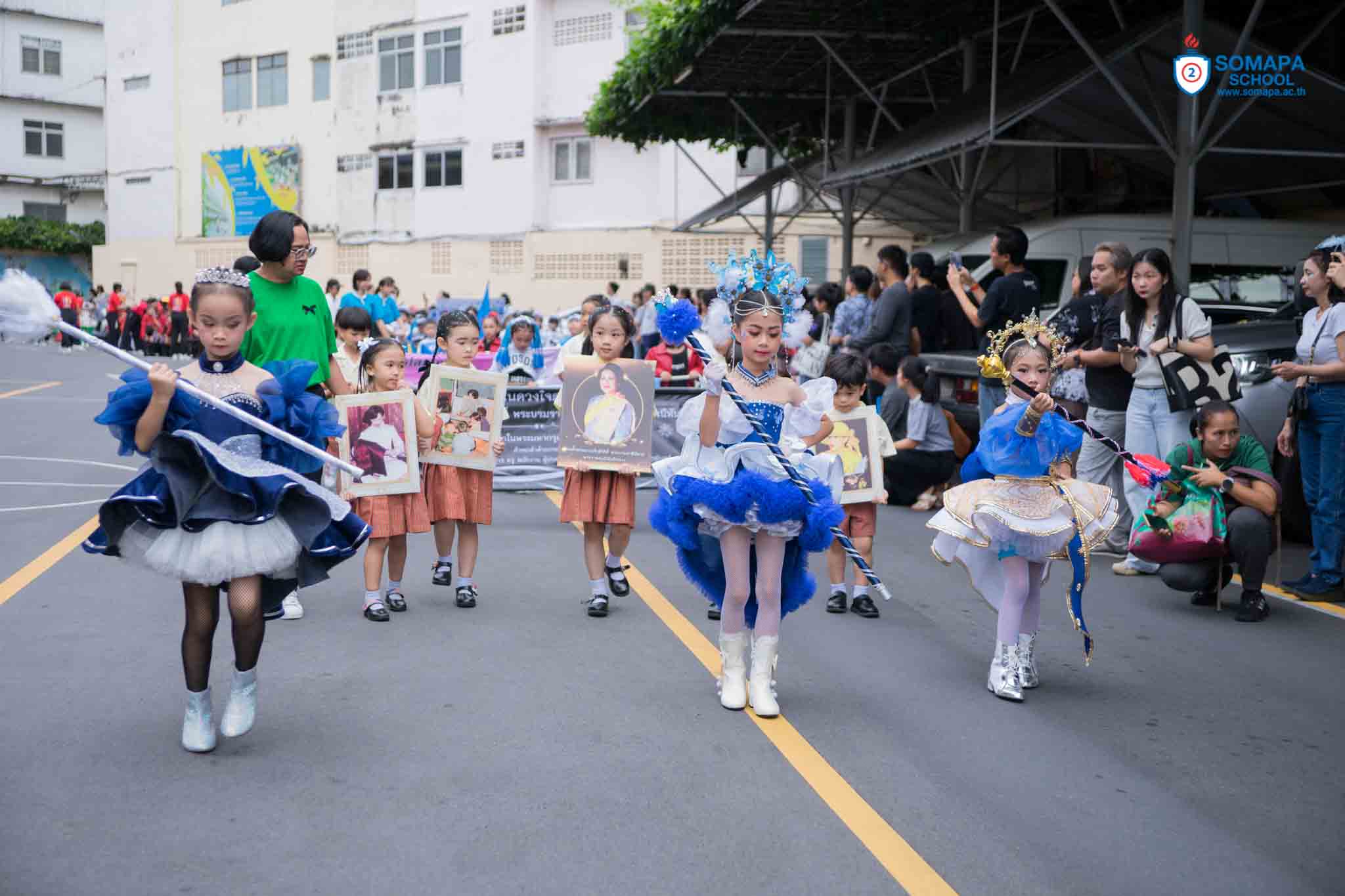 ขบวนพาเหรดสุดน่ารักของน้อง ๆ เดินเข้าสู่สนามอย่างเป็นระเบียบ