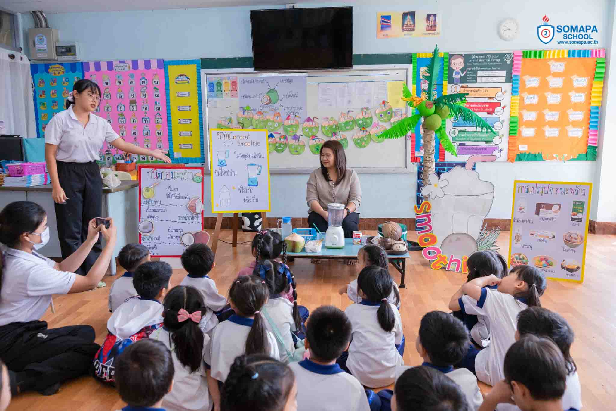 แต่ละฐานมาพร้อมเกม ความรู้ และความสนุก เด็ก ๆ ได้ลงมือทำสิ่งประดิษฐ์ ทดลองปลูกข้าว และสนุกกับการทำ Coconut Smoothie ทานเอง อร่อยและภูมิใจสุด ๆ