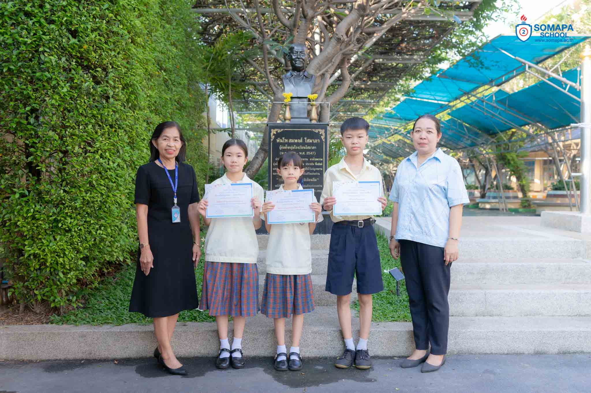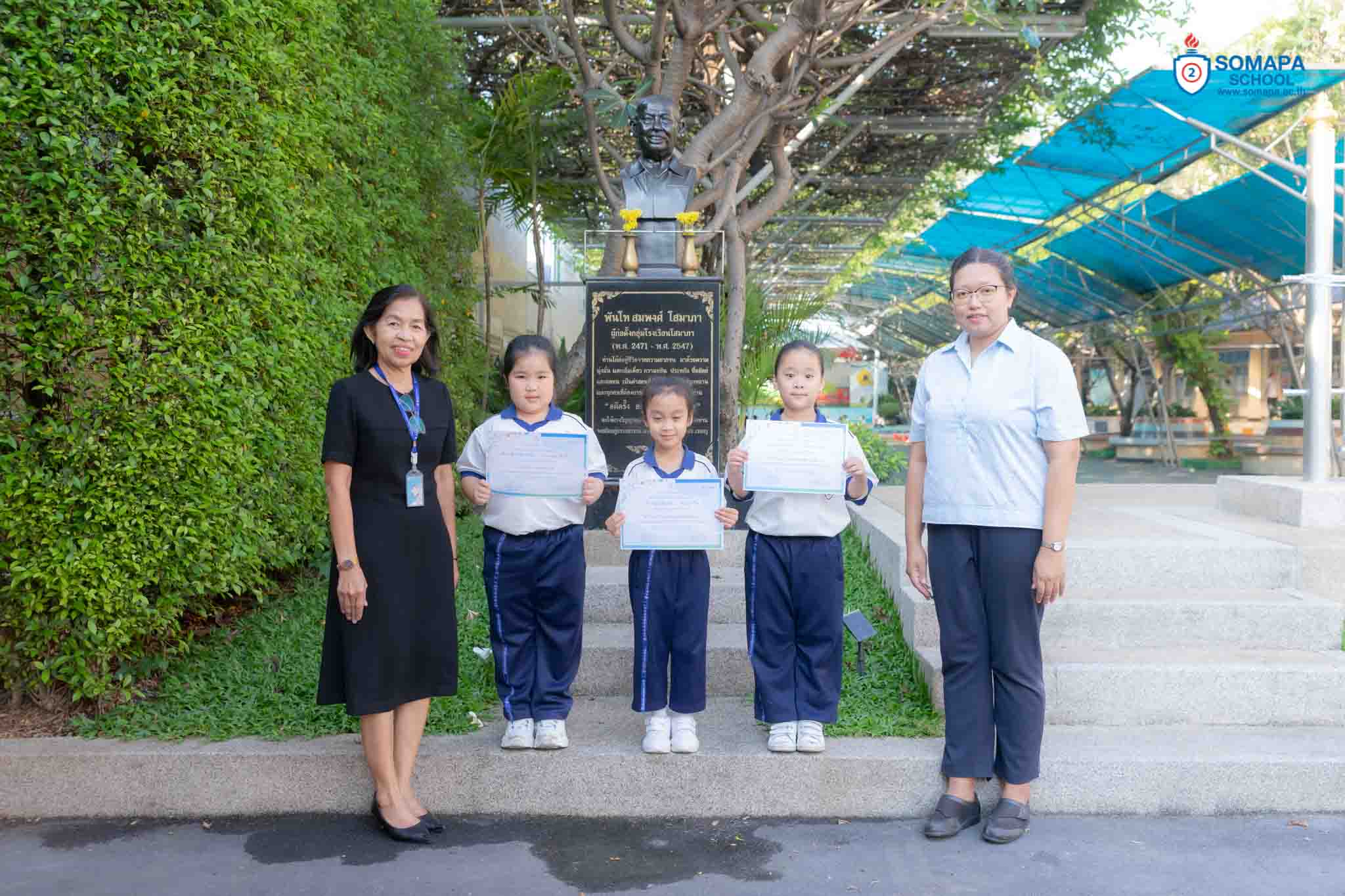 เป็นผู้มอบเกียรติบัตร พร้อมถ่ายภาพร่วมกับนักเรียนและคุณครู