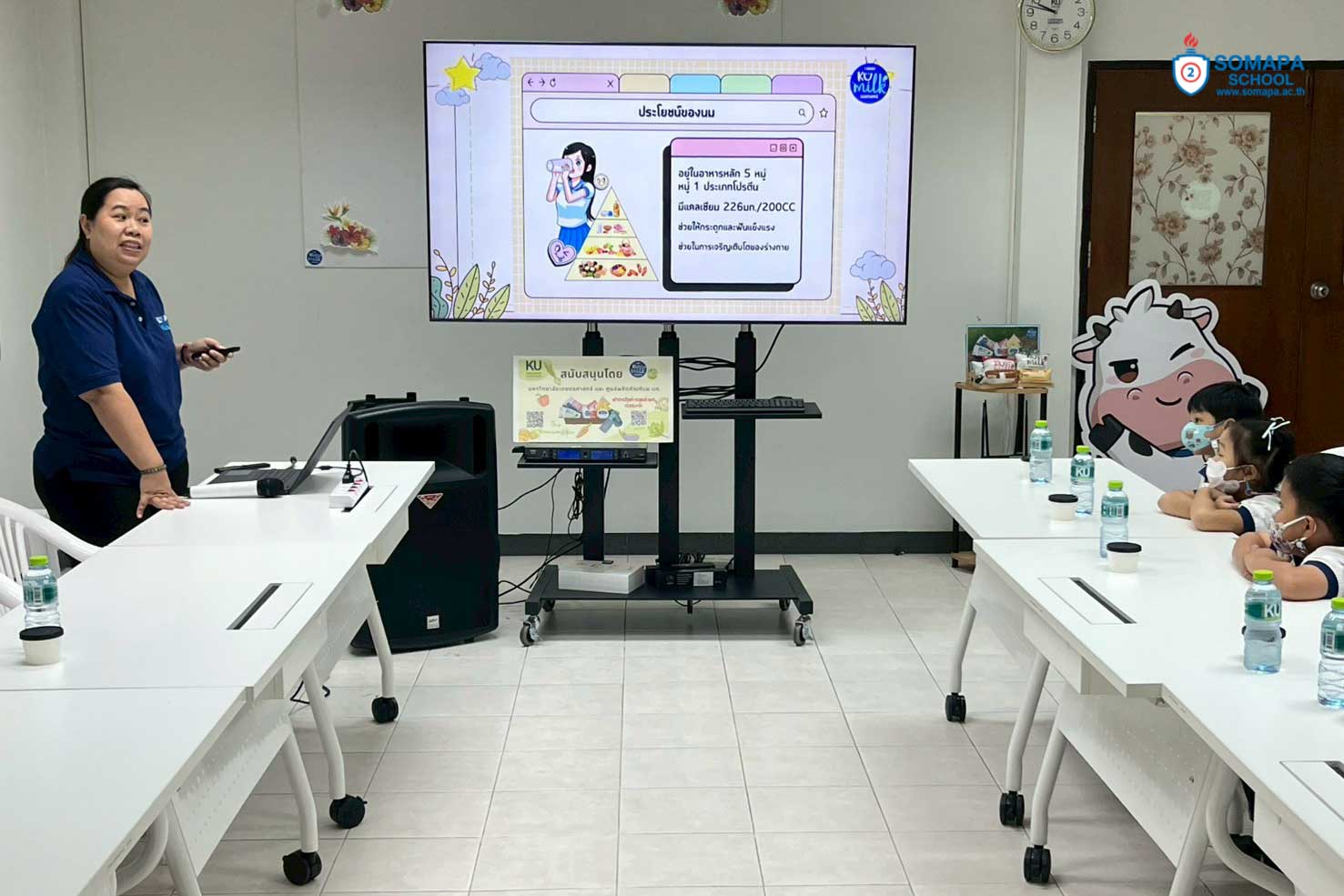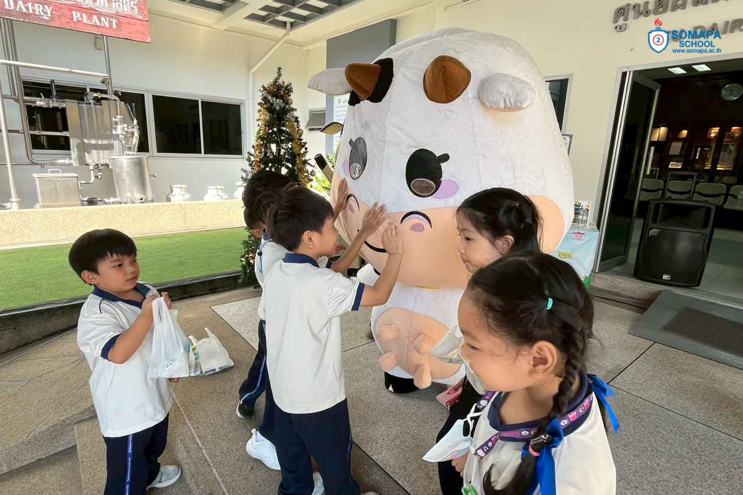 น้อง ๆ ได้เรียนรู้เกี่ยวกับผลิตภัณฑ์ที่ทำจากนม รู้จักนมประเภทต่าง ๆ อย่างใกล้ชิด พร้อมเปิดประสบการณ์การเรียนรู้นอกห้องเรียนที่ทั้งสนุกและได้ความรู้
