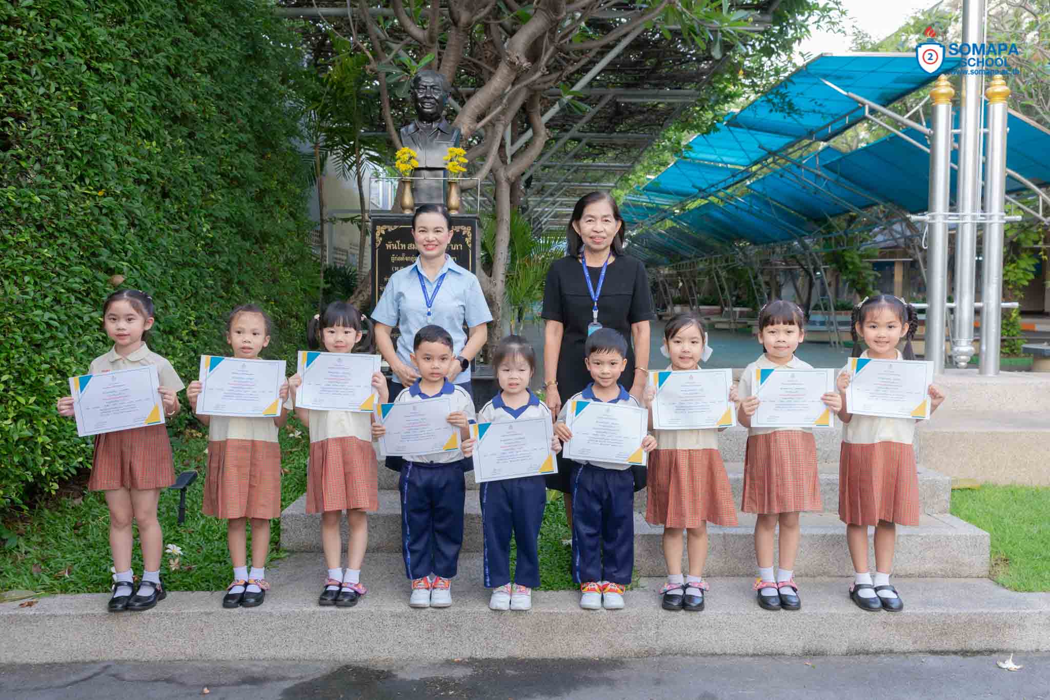พร้อมถ่ายภาพร่วมกับนักเรียนและคุณครู