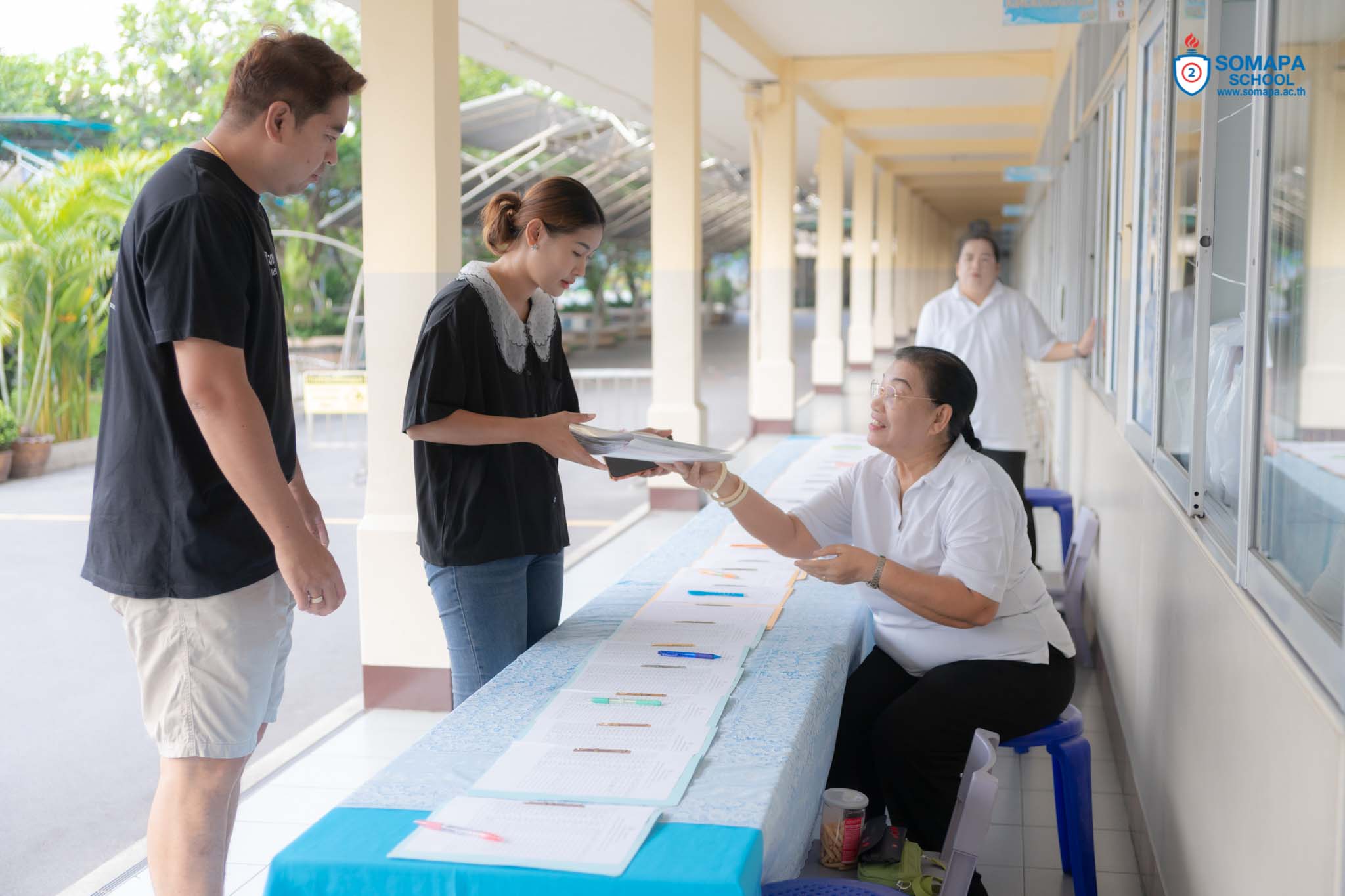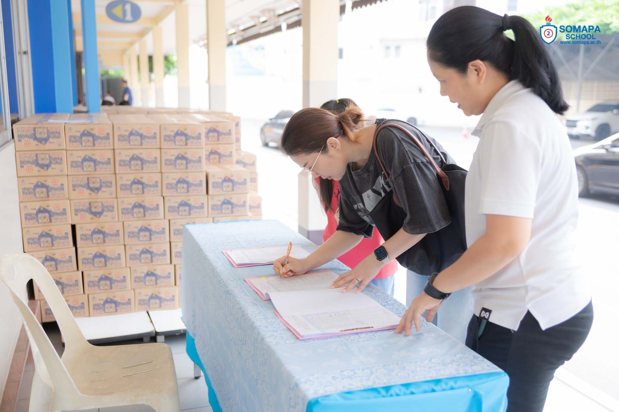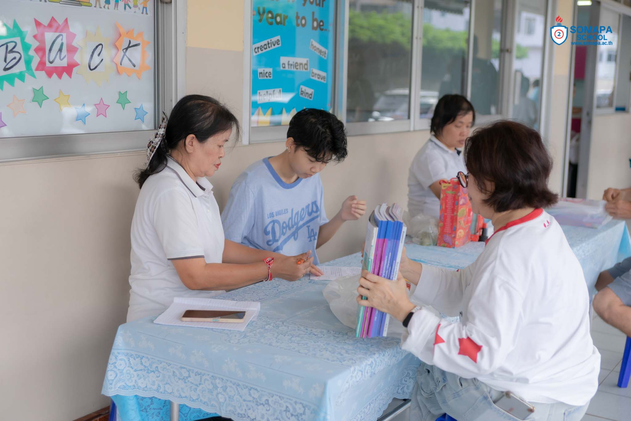 จำหน่ายเสื้อผ้า แจกผลการเรียน และรับนมโรงเรียน
